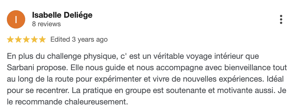 « la pratique en groupe est soutenante et motivante. idéal pour se recentrer. » — Isabelle.