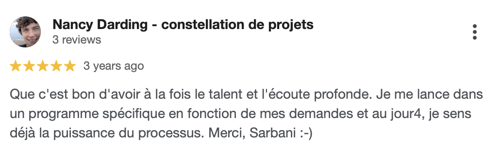 « Sarbani nous guide avec bienveillance tout au long du chemin, pour expérimenter et vivre de nouvelles expériences. »